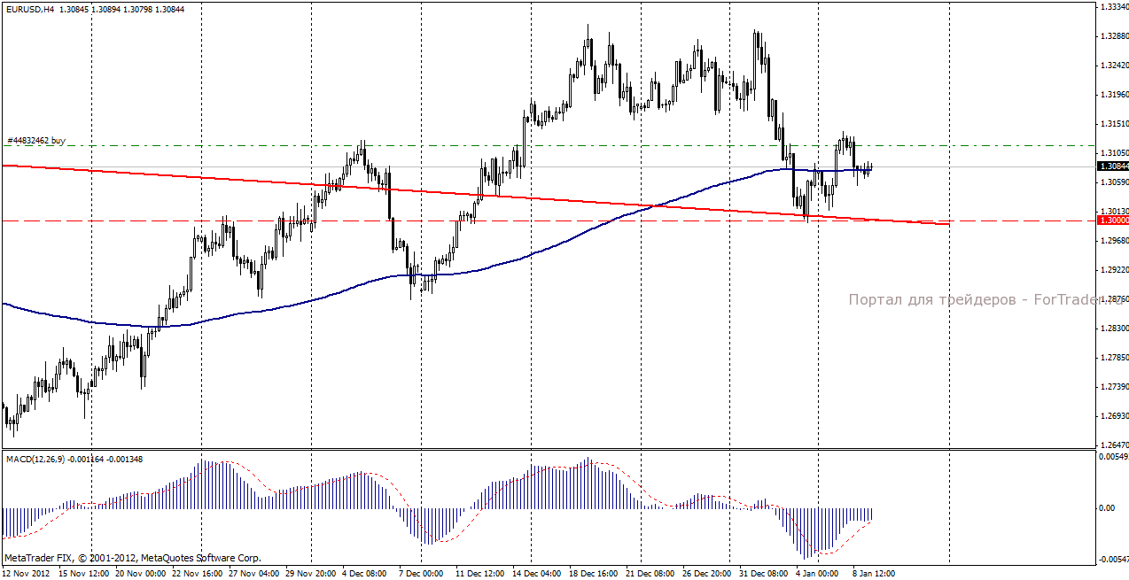 На торгах во вторник, 8 января пара евро/доллар продемонстрировала отрицательную динамику. Несмотря на заявление министра финансов Японии о планируемых покупках облигаций Европейского стабилизационного фонда ESM, вызвавшее краткосрочные покупки евро, весь торговый день котировки евровалюты испытывали давление, в свете предстоящего заседания ЕЦБ по процентной ставке. Инвесторы соблюдали некоторую осторожность, стремясь минимизировать риски и частично сокращая позиции. Не способствовали укреплению евро и негативные данные по уровню безработицы в Еврозоне и промышленным заказам Германии.