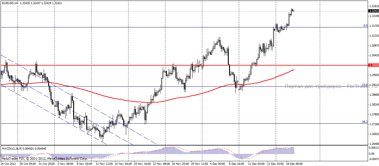 По мнению аналитиков журнала ForTrader, участники рынка продолжат пристально следить за развитием событий по решению проблемы «фискального обрыва». Итоги сегодняшнего совещания республиканцев и пресс-конференция Бейнера могут дать очередной толчок к продажам доллара и усилить спрос на рисковые активы.
