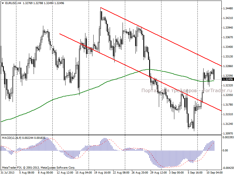 По мнению аналитиков журнала ForTrader, ввиду отсутствия каких-либо важных экономических публикаций, динамика пары евро/доллар будет зависеть от новостей из США. С одной стороны, разрядка ситуации с Сирией снизила спрос на валюты-убежища и оказала поддержку евро. С другой стороны, рынок ждет, что FOMC на следующем заседании объявит о начале сокращения программы количественного смягчения, что является поддержкой для доллара. В этой связи, с большей степенью вероятности, до заседания американского регулятора, евро/доллар продолжит движение в установившемся торговом диапазоне.