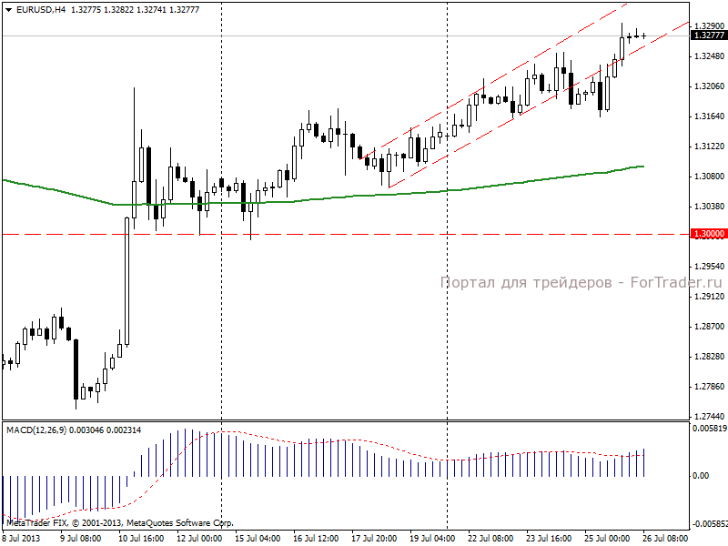 По мнению аналитиков журнала ForTrader, подобная динамика пары евро/доллар, в первую очередь, обусловлена не укреплением евро, а ослаблением доллара, которое будет продолжаться, по крайней мере, до публикации данных NFP в следующую пятницу. С другой стороны, на настроения европейских инвесторов негативно влияет заявление руководства МВФ, которое считает, что дальнейшее кредитование зависит от прогресса в процессе восстановления банковской сферы Еврозоны. По мнению МВФ, необходимым условием для стимуляции экономического роста является дальнейшее снижение ЕЦБ процентной ставки, которая и так, на данный момент, уже находится на историческом минимуме.