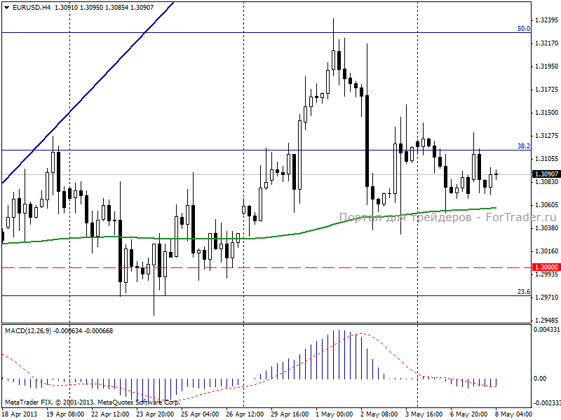 Сегодня, 8 мая, евро/доллар торгуется выше уровня закрытия предыдущего торгового дня. Положительным фактором для рисковых активов сегодня выступают опубликованные в Китае данные по сальдо торгового баланса, оказавшиеся лучше прогнозов. Сегодняшний день снова будет слабо насыщен экономическими показателями. На ценовую динамику европейской валюты могут оказать влияние данные по промышленному производству в Германии.