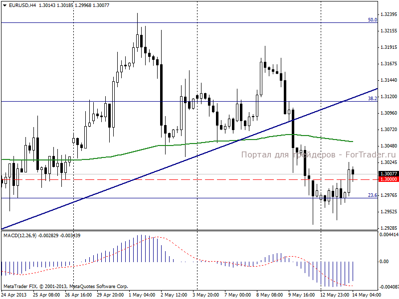 Сегодня, 14 мая, евро/доллар торгуется выше уровня закрытия предыдущего торгового дня. Позитивом для евро выступает решение Еврогруппы о выделении финансовой помощи Кипру и Греции в размере 2 млрд. евро и 7,5 млрд. евро соответственно. Глава Еврогруппы Йерун Дейсселблум заявил, что удовлетворен прогрессом восстановления экономики Греции и выполнением кипрскими властями требований кредиторов. Из публикаций экономической статистики на ценовую динамику европейской валюты сегодня может оказать влияние публикация данных по промышленному производству Еврозоны, а также индекса деловых настроений ZEW Германии.