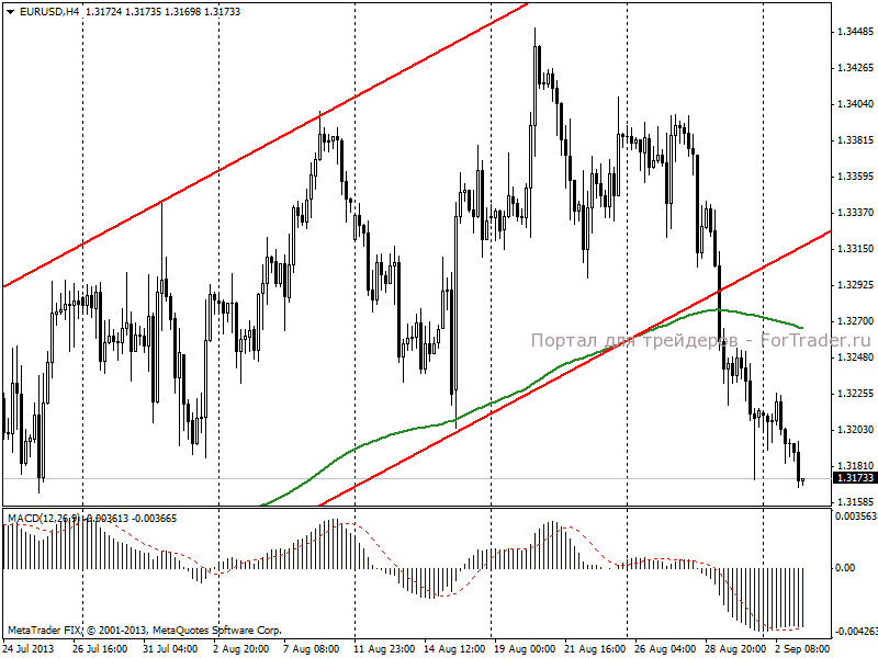 По мнению аналитиков журнала ForTrader, текущая динамика пары евро/доллар свидетельствует о том, что спрос на американский доллар, как представитель класса защитных активов, остается актуальным. Поддержку доллар получает также от предстоящей в пятницу публикации данных по рынку труда США Nonfarm Payrolls, которые, по ожиданиям большинства участников рынка, станут окончательным доказательством того, что на сентябрьском заседании FOMC приступит к сокращению программы финансового стимулирования.