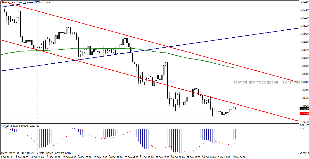 На момент написания обзора евро торгуется по цене 1,3027 долларов.