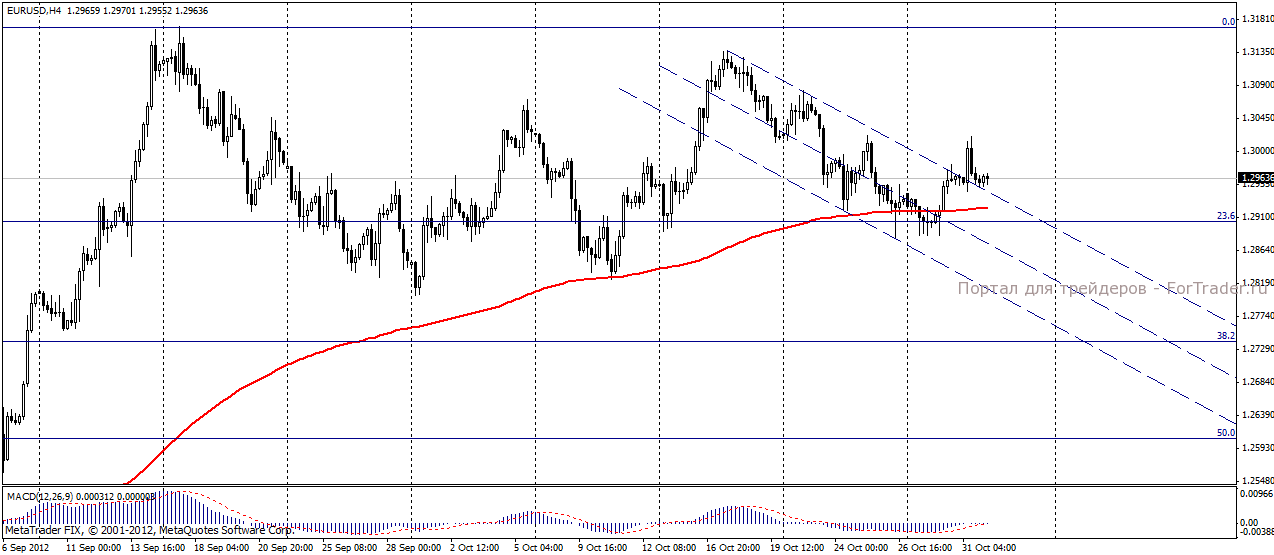 На прошедших торгах 31 октября пара евро/доллар, продемонстрировала разностороннюю динамику. Так, в первой половине дня пара испытала краткосрочное давление со стороны опубликованной экономической статистики – уровень безработицы в Еврозоне вырос, индекс потребительских цен остался на прогнозируемом уровне. Однако большее влияние на пару евро/доллар вчера оказали заявления европейских министров. Так, Премьер-министр Испании Марио Рахой заявил в парламенте, что стране необходима финансовая помощь кредиторов в банковском секторе. В тон ему выступило заявление министра финансов Франции Московиси, о том, что несмотря на низкий показатель роста личных расходов в 3-м квартале, это не станет препятствием для позитива в 4-м квартале. На фоне этих заявлений пара прошла психологический уровень 1,3000 и достигла уровня 1,3020. Однако, пришедшие впервые за неделю на рынок, американские игроки, в свете последнего торгового дня месяца, провели ребалансировку позиций, что вызвало фиксацию прибыли и сокращение длинных позиций, отбросив пару к уровням открытия дня.