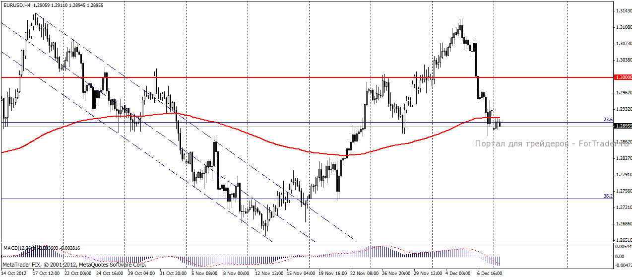 По мнению аналитиков журнала ForTrader, пара евро/доллар, на фоне усиления пессимистических настроений инвесторов, будет испытывать давления вплоть до заседания ФРС 12 декабря и итогов саммита ЕС 13 декабря. Отсутствие прогресса в решении проблемы «фискального обрыва» также будет играть на руку усилению позиций доллара против европейской валюты.