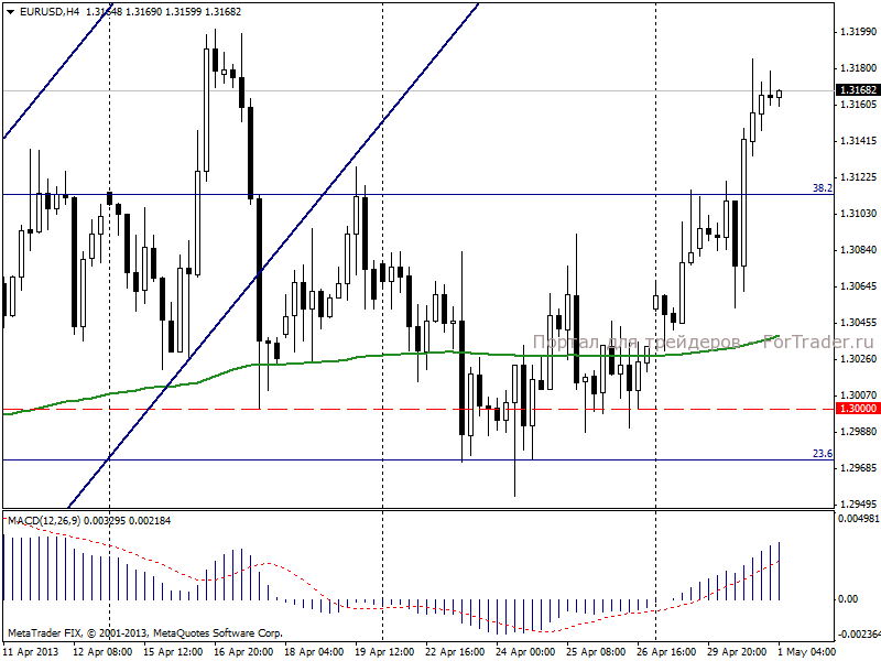 На момент написания обзора евро торгуется по цене 1,3168 долларов.