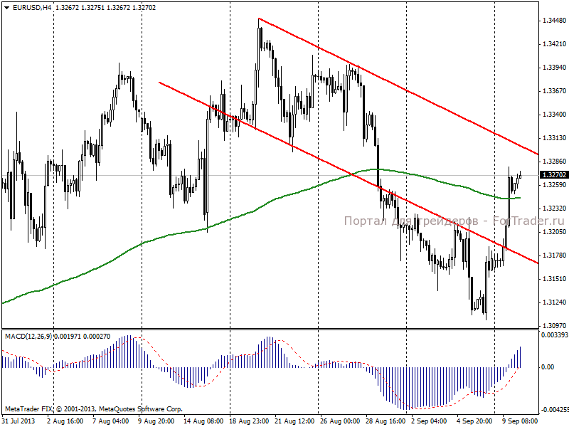 На торгах в понедельник, 9 сентября, пара евро/доллар продемонстрировала уверенную положительную динамику. Все, кто не успел в пятницу отыграть публикацию отчета Nonfarm Payrolls, отыгрывали его вчера. Дополнительное давление на доллар оказало заявление президента США Барака Обамы о возможности решить сирийскую проблему дипломатическим путем. США отложит проведение военной операции в случае выполнения Сирией инициатив России по передаче арсеналов химического оружия под международный контроль. Разрядка обстановки снизила спрос на защитные активы, в том числе и на доллар. Вчера ожидалось, что Обама назовет преемника Бена Бернанке на посту главы ФРС. Однако, решение до сих пор не принято и перенесено на конец месяца.