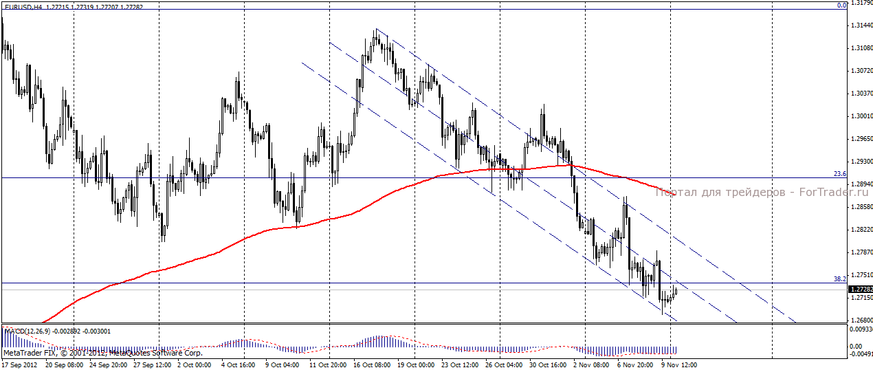 На сегодняшних торгах 12 ноября евро/доллар торгуется с приподнятым настроем. В отсутствие публикации важных экономических данных, драйвером, поддерживающим евро, выступила информация о принятии греческим парламентом бюджета на 2013 год. Теперь все внимание участников рынка будет обращено на стартующий сегодня в Брюсселе саммит министров экономики и финансов Еврозоны, на котором будет решаться вопрос о предоставлении Греции финансовой помощи. Однако, как считают аналитики журнала ForTrader, даже в случае положительного решения вопроса, коренным образом это ситуацию не изменит, поскольку следующим этапом должно стать одобрение ЕЦБ и МВФ, что, в свете имеющихся разногласий, добавляет ситуации негатива. А между тем, Греция уже в пятницу должна будет выплатить 5 млрд. евро по кредитам.