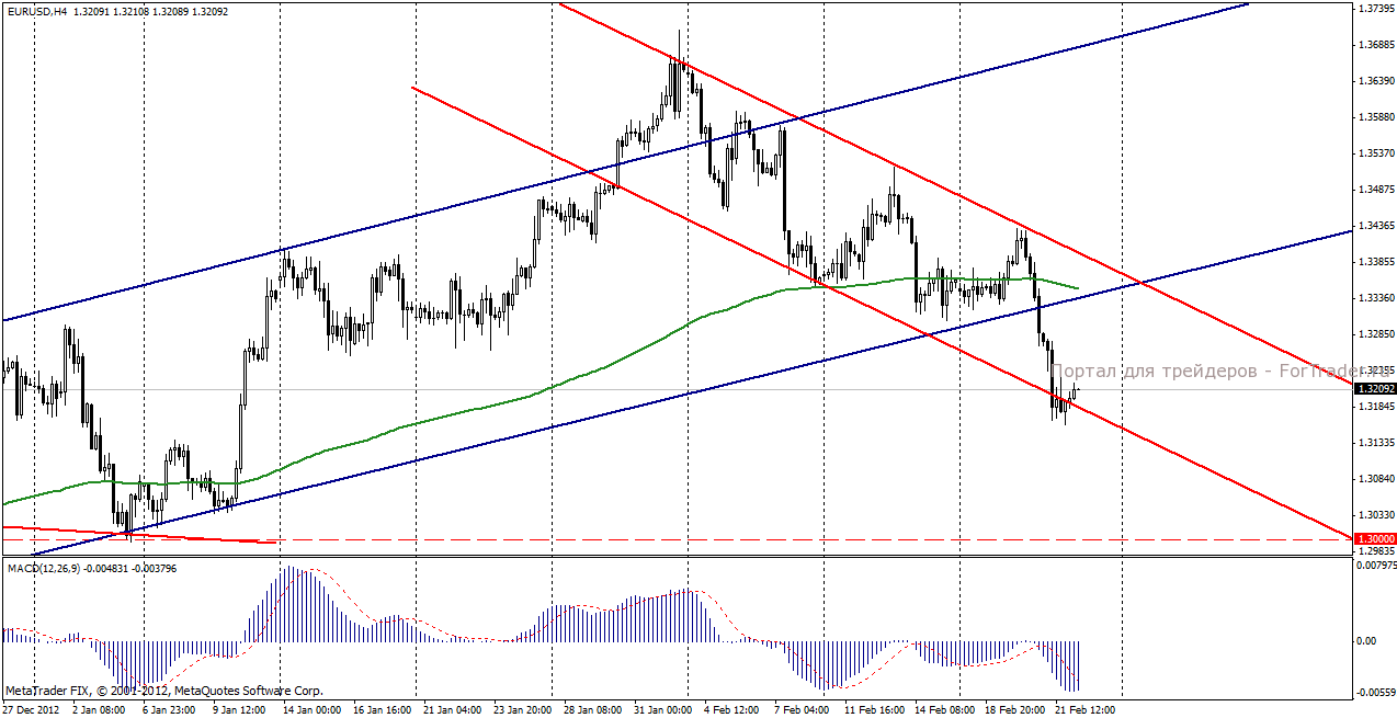 На торгах в четверг, 21 февраля пара евро/доллар продемонстрировала негативную динамику. Преобладание негативных настроений на рынке, вызванное публикацией протоколов последнего заседания FOMC, вызвало сокращение длинных позиций в рисковых активах. Публикация негативных данных по индексам PMI Еврозоны только усилила бегство инвесторов из риска. На американской сессии данные по рынку труда США и индексу производственной активности несколько приостановили укрепление американского доллара.