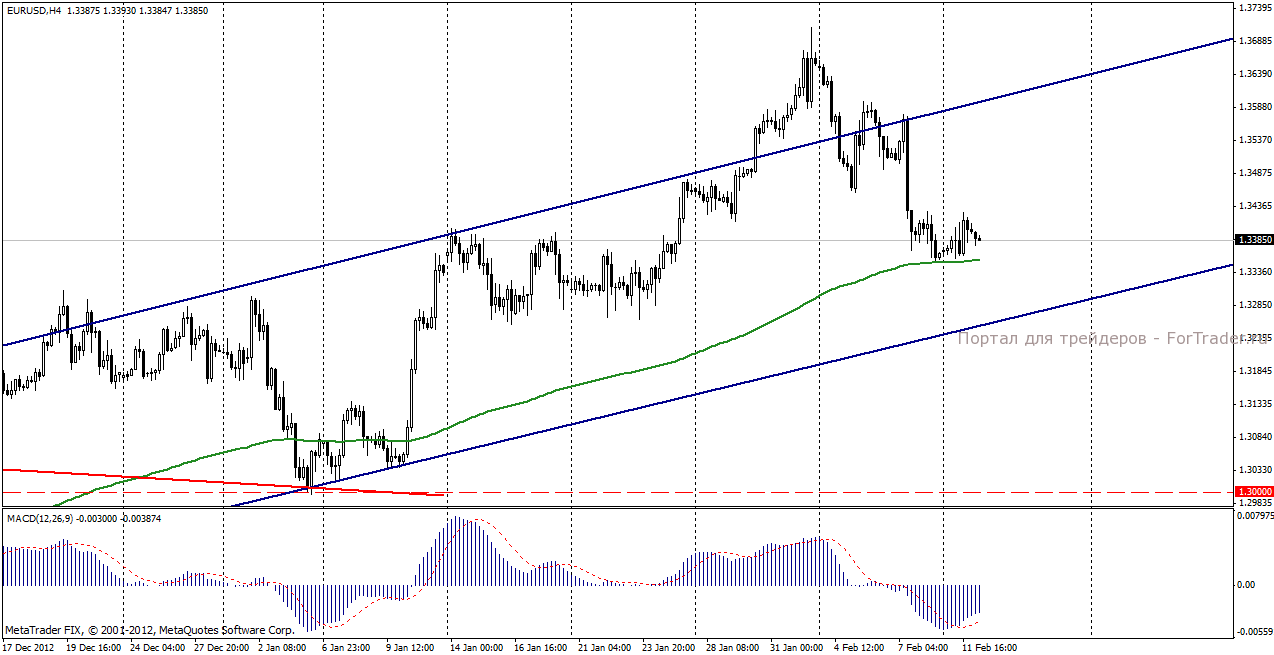 На торгах во вторник, 12 февраля, евро/доллар торгуется немного ниже уровня закрытия понедельника. Из публикации экономической статистики стоит обратить внимание на данные по потребительской и производственной инфляции Великобритании, а также отчет о ежемесячном исполнении бюджета США. Основным событием дня станет рабочий визит президента ЕЦБ Марио Драги в Испанию, где он выступит с речью в испанском Конгрессе и встретится с премьер-министром Мариано Рахоем, что в свете коррупционного скандала в Испании, представляет значительный интерес для трейдеров и инвесторов. Поздно вечером с посланием в Конгрессе выступит президент США Барак Обама, от которого ожидают дальнейших конструктивных шагов в вопросе решения бюджетных проблем.