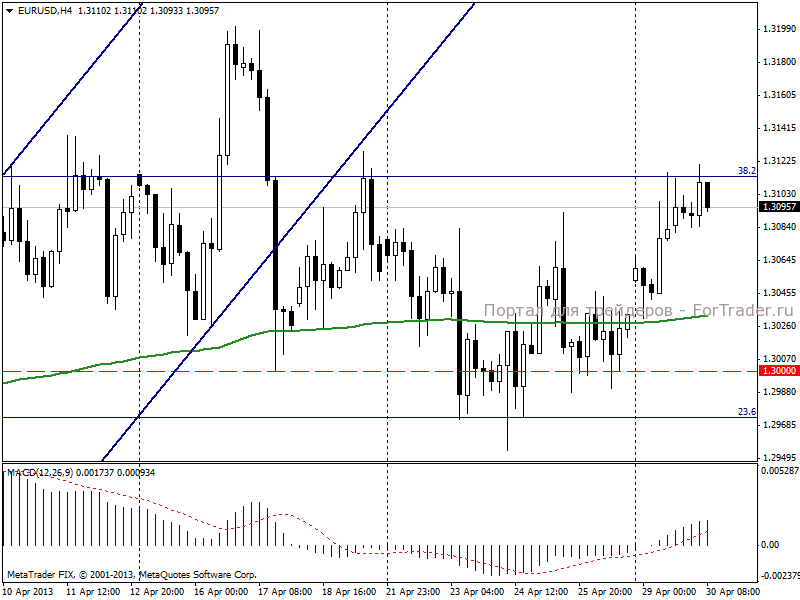 На момент написания обзора евро торгуется по цене 1,3095 долларов.