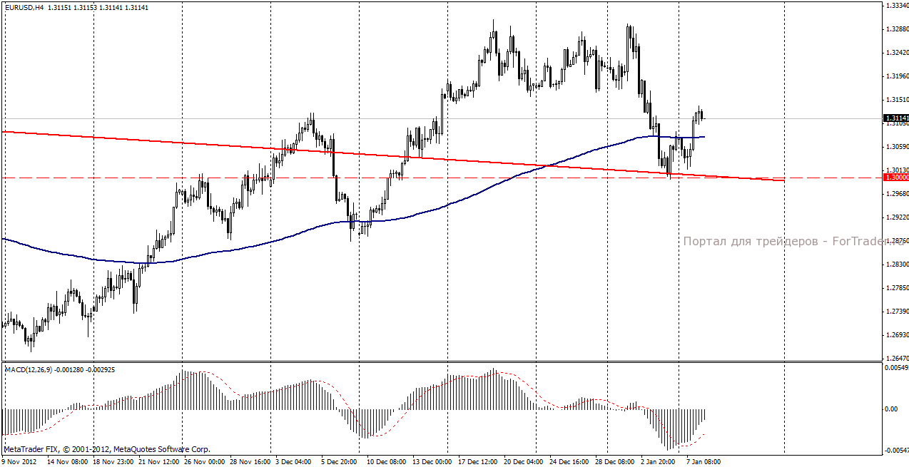 На торгах во вторник, 7 января, евро/доллар торгуется немного ниже уровня закрытия вчерашнего дня. Позиции евро сегодня укрепило заявление министра финансов Японии Таро Асо о том, что Банк Японии намерен приобрести облигации Европейского стабилизационного фонда ESM. Объем покупок еще не определен, однако сами комментарии представителя японского правительства стали причиной покупок евровалюты на азиатской сессии. Из публикации макроэкономической статистики на сегодня запланирован выход коэффициента безработицы Еврозоны, данных по европейским розничным продажам, а также информации по производственным заказам Германии.
