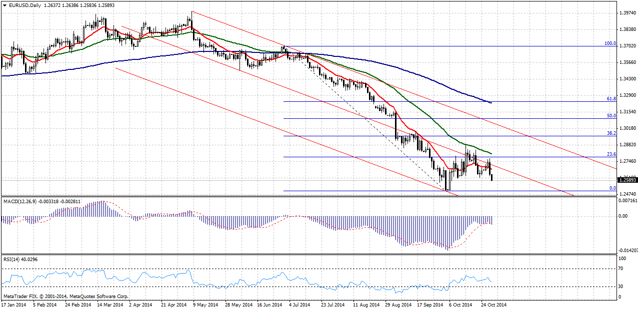 По мнению экспертов журнала ForTraders.org, валютная пара EUR/USD, ближайшей целью снижения станет уровень 1,2550 (поддержка краткосрочного нисходящего тренда). После его достижения и некоторой коррекции, нисходящая тенденция продолжится до отметки 1,2300 (линия поддержки среднесрочного нисходящего тренда).