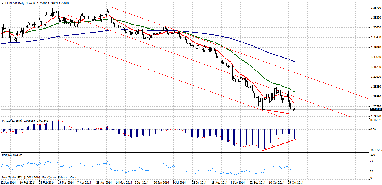 Новая неделя для пары евро/доллар началась с попыток продолжить снижение, вызванное окончанием программы QE3 ФРС США. Тем не менее, в понедельник, 3 ноября, несмотря на положительную динамику производственного индекса ISM, евро удалось отступить от достигнутого двухлетнего минимума.