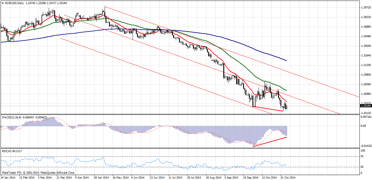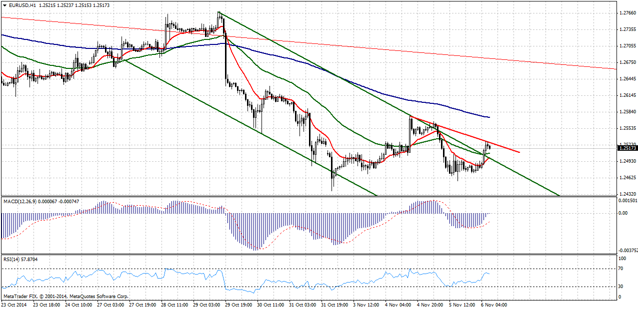 Сегодня же, 6 ноября, ЕЦБ объявит о своем решении по процентной ставке, от которого сюрпризов не ожидается, а глава ЕЦБ Марио Драги проведет традиционную пресс-конференцию, которая, безусловно, будет намного интереснее рынку. Если комментарии Драги еще больше усилят разницу между курсами монетарной политики ЕЦБ и ФРС, евро ждет очередная волна распродаж. В противном случае, пара EUR/USD может начать восходящее коррекционное движение.