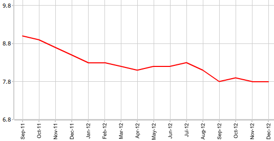 Хуже прогнозов получились данные по безработице в Америке, составившей 7,8% в декабре (прогноз 7,7%). Более мелкие индикаторы рынка труда улучшились, сообщает журнал ForTrader. Средний почасовой заработок в США в декабре вырос на 0,07 долл до 23,73 долл, а общая продолжительность рабочей недели в США увеличилась на 0,1ч до 34,5ч.