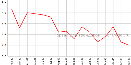 Как свидетельствуют официальные данные, вышедшие 14 июня, промышленное производство США в мае осталось без изменений по сравнению с апрелем и выросло на 1,6% против аналогичного периода 2012 года. Экономисты прогнозировали, что показатель прибавит 0,3% в месячном выражении.