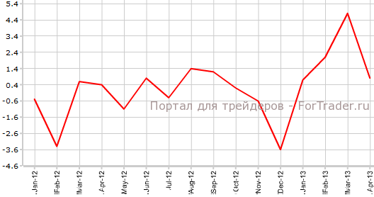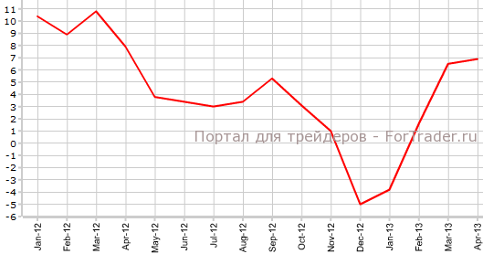 Как свидетельствуют данные ABS, опубликованные 11 июня, объемы ипотечного кредитования в Австралии в апреле выросли на 0,8% по сравнению с мартом и на 6,9% против аналогичного периода 2012 года. Аналитики ожидали, что показатель, замедливший темпы впервые за 4 месяца, поднимется на 2,1% в месячном выражении. В марте ипотечное кредитование Австралии было равно 4,8% м/м и 6,5% г/г.