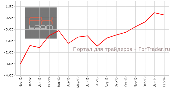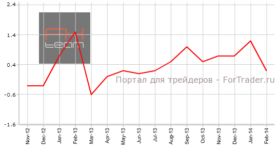 Изменение объема розничной торговли составило 0.2% м/м. Это минимальное за последние 8 месяцев значение данного показателя. Прогноз находился на уровне 0.4% м/м. Предыдущий показатель напротив был на максимальном за последний год уровне: 1.2% м/м (6.2% г/г).