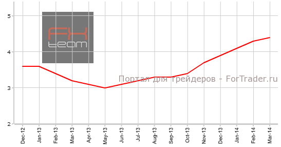 Изменение объема кредитования частного сектора составило 0.4% м/м (4.4% г/г), при прогнозе 0.4% м/м (4.5% г/г). В феврале значение показателя находилось на уровне 0.4% м/м (4.3% г/г).