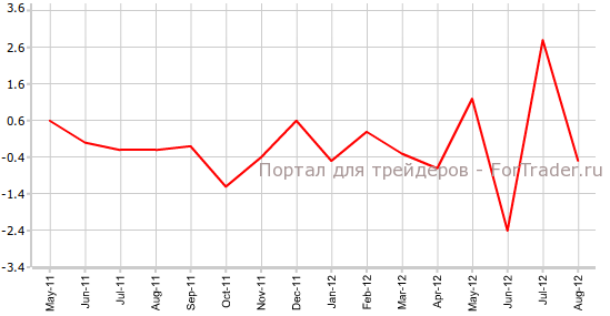 Согласно данным национального статистического бюро Великобритании, вышедшим 9 октября, промышленное производство Великобритании в августе упало на 0,5% по сравнению с предыдущим периодом, и на 1,2% против августа 2011 года. Экономисты прогнозировали практически те же значения – -0,5% м/м, -1,1% г/г
