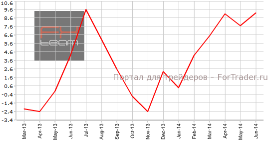 Индекс цен на сырье зафиксировал рост на 1.1% м/м (9.2% г/г). Прогноз был более скромный и находился на отметке 0.6% м/м (9.0% г/г). В мае значение индекса составляло -0.3% м/м (7.7% г/г).