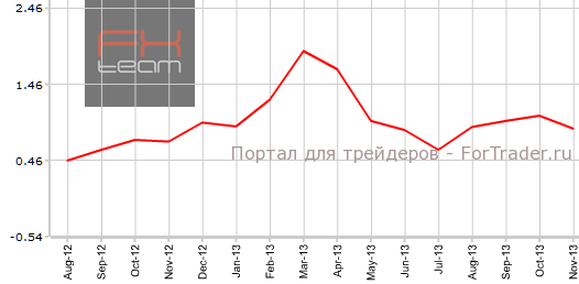В октябре показатель составлял 1,0% м/м и 13,61% г/г, напоминает журнал ForTrader.