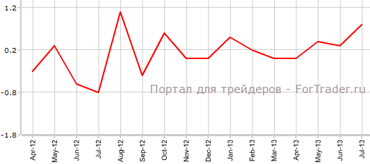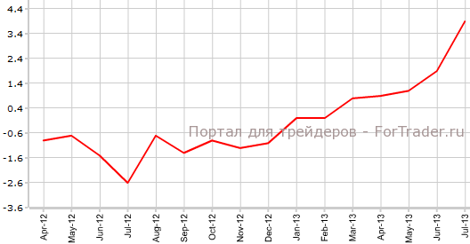 Согласно вышедшим 2 августа данным Nationwide, цены на жилье Великобритании в июле поднялись на 0,8% по сравнению с предыдущим месяцем и на 3,9% против аналогичного периода 2012 года. Экономисты прогнозировали, что показатель прибавит 0,4% в месячном выражении и 3,1% в годовом.