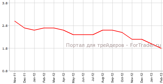 Согласно данным статистического агентства ЕС Eurostat, индекс потребительских цен еврозоны в феврале вырос на 0,4% по сравнению с январем и на 1,8% против аналогичного периода 2012 года. Именно эти значения и прогнозировались экономистами. В январе CPI составлял -1,0% м/м и 1,8% г/г.