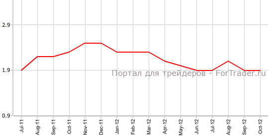 Согласно представленным 14 ноября данным Insee, индекс потребительских цен во Франции в октябре вырос на 0,2% в сравнении с сентябрем и на 1,9% против аналогичного периода 2011 года. Аналитики ожидали именно таких значений показателя. Нужно отметить, что CPI Франции показал в октябре улучшение — в предыдущем месяце он снизился на 0,2%.