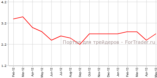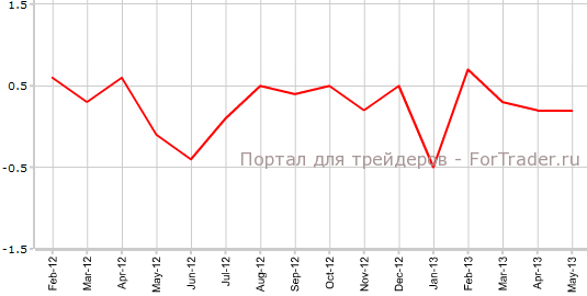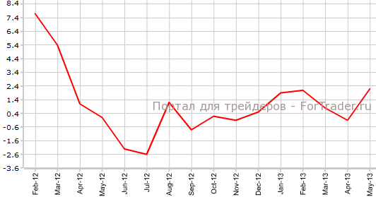 Индекс закупочных цен производителей Великобритании в мае снизился на 0,3% по сравнению с апрелем и прибавил 2,2% против аналогичного периода 2012 года. Аналитики ожидали значений 0,1% м/м и 2,5% г/г, сообщает журнал ForTrader.