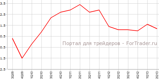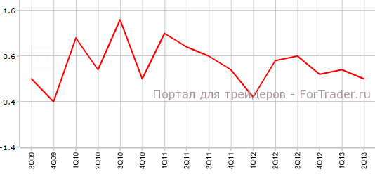 Согласно представленным 2 августа данным, индекс цен производителей Австралии во 2-м квартале поднялся на 0,1% по сравнению с предыдущим кварталом и на 1,2% против аналогичного периода 2012 года. Аналитики прогнозировали, что показатель вырастет на 0,5% в квартальном выражении и на 1,6% в годовом.