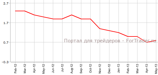 В апреле были зарегистрированы значения CPI -0,1% м/м и 0,7% г/г, сообщает журнал ForTrader.