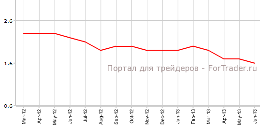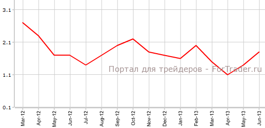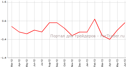 Согласно вышедшим 16 июля данным, индекс потребительских цен США в июне поднялся на 0,5% по сравнению с предыдущим месяцем и на 1,8% против того же периода 2012 года. Экономисты прогнозировали, что показатель вырастет на 0,3% в месячном выражении и на 1,6% в годовом. В мае CPI США составлял 0,1% м/м и 1,4% г/г, сообщает журнал ForTrader.