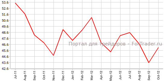 Индекс активности PMI показывает улучшение (>50) или ухудшение (<50) ситуации в сравнении с предыдущим месяцем.