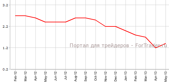 Согласно опубликованным 31 мая данным статистического агентства ЕС Eurostat, индекс потребительских цен еврозоны в мае поднялся, как и ожидали аналитики, на 1,4% против того же периода прошлого года. Месяцем ранее было зафиксировано значение 1,4% г/г.