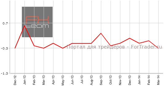 Индекс производственных цен составил -0.3% м/м (-0.9% г/г), при прогнозе рынка 0.1% м/м (-0.7% г/г). В феврале месячного изменения не произошло, т.к. показатель был зафиксирован на уровне 0.0% м/м (-0.9% г/г).