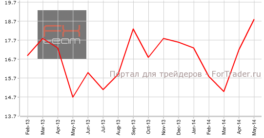 Профицит сальдо продолжает нарастать второй месяц подряд на фоне сокращения объемов импорта. В мае ко всему прочему сократился и объем экспорта, что отражает явный негатив в экономике страны. По мнению аналитиков журнала ForTrader, несмотря на увеличение активного сальдо торгового баланса, ожидается ослабление евро.