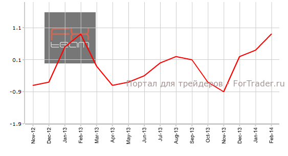Индекс цен на импорт составил 0.9% м/м (-1.1% г/г). Рынок прогнозировал значения на уровне 0.6% м/м (-1.9% г/г). В январе показатель находился на уровне 0.4% м/м (-1.2% г/г). Данная положительная динамика положительно скажется на укреплении доллара, считают аналитики журнала ForTrader.