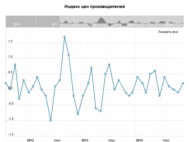 В октябре рост на 0.2% м/м в ценах конечного спроса можно отнести к индексу для конечных услуг спроса, который увеличился на 0.5% м/м. В отличие от этого, цены на конечные товары спроса снизились на 0.4% м/м. В сфере промежуточного спроса цены на товары первичной обработки (полуфабрикаты) снизились на 0.9% м/м, индекс для необработанных товаров упал на 2.4% м/м, а цены на услуги повысились на 0.1%.