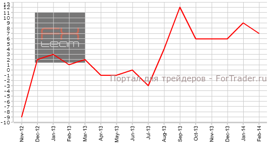 Индекс делового доверия NAB зафиксирован на отметке +7. Прогноз не составлялся, а предыдущее значение составляло +9. Опубликованная слабая статистика не сможет оказать поддержку валюте страны, считают аналитики журнала ForTrader.