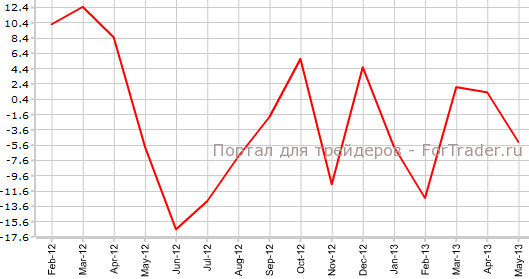Согласно информации, представленной 16 мая ФРБ-Филадельфия, производственный индекс округа в мае составил -5,2 против 1,3 в апреле. Аналитики, в свою очередь, предполагали, что индекс, упавший второй месяц подряд, поднимется до отметки 2,5.