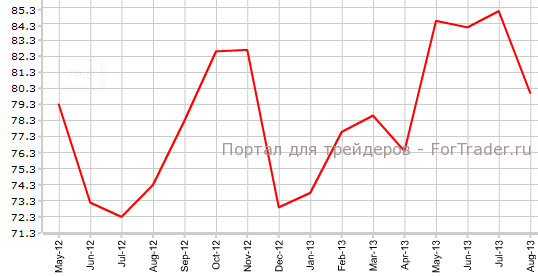 Согласно обнародованным 16 августа данным Мичиганского университета, индекс потребительских настроений США в августе составил 80,0 против 85,1 в июле. Экономисты прогнозировали, что показатель будет равен 85,6, сообщает журнал ForTrader.