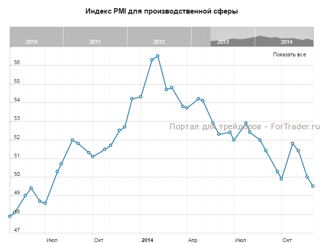 Текущее значение индекса PMI находится на самом низком уровне за 17 месяцев. Компании с трудом пытаются получить новые заказы как внутри Германии, так и за рубежом. По причине экономической неопределенности, надежды на какой-либо значительный рост до конца 2014 года в производстве крайне невелики.