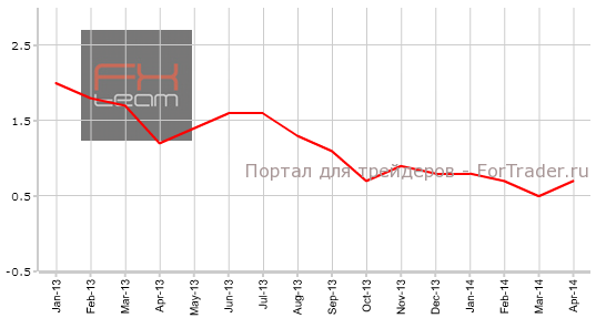 Оценка индекса потребительских цен составила 0.7% г/г, при прогнозе 0.8% г/г. Предыдущее значение находилось на отметке 0.5% г/г.
