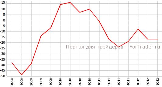 Как сообщили 6 ноября в SECO, индекс настроений потребителей в Швейцарии в 4-м квартале составил, как и в предыдущем периоде, -17,0. Показатель оказался лучше пессимистичных ожиданий экономистов, прогнозировавших значение -22,0.