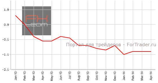 На протяжении последних двух лет, за редким исключением, индекс производственных цен демонстрирует снижение от месяца к месяцу. По мнению аналитиков журнала ForTrader стоит ожидать ослабления евро, как результата того, что фактическое значение оказалось слабее прогноза рынка, а также продолжившегося снижения значения показателя.