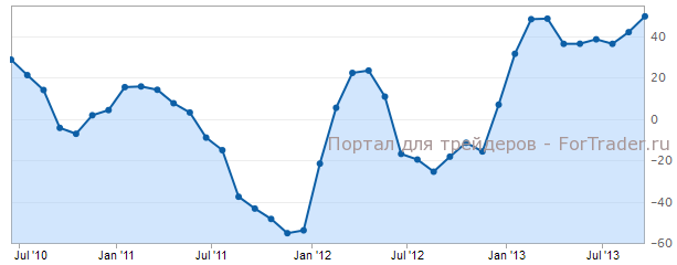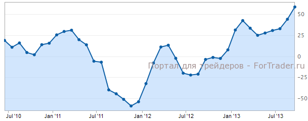 Индекс настроений в деловой среде еврозоны зафиксирован на отметке 58,6, когда месяцем ранее он составлял 44,0. Как и в случае с Германией, имеется превышение прогноза (47,2) и достижение максимума нескольких лет.