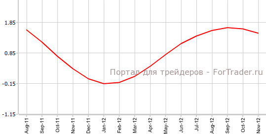 Как свидетельствуют данные исследовательского института KOF, вышедшие 30 ноября, индикатор KOF в ноябре составил 1,5, упав с зарегистрированной в сентябре отметки 1,64. Экономисты прогнозировали небольшое снижение показателя, до 1,60.